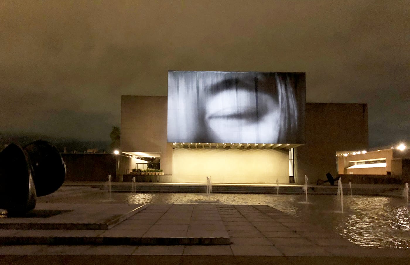 The Everson Museum’s presentation is part of a celebration of its 50th anniversary at its current location in downtown Syracuse, where it is housed in a chunky, poured-concrete structure designed by the late I.M. Pei. Once described as “a work of art for works of art,” the Everson was the architect’s first-ever museum project. For the current exhibition, one of the building’s exterior walls has become a screen for nighttime projections of Ono’s experimental films from the 1960s.