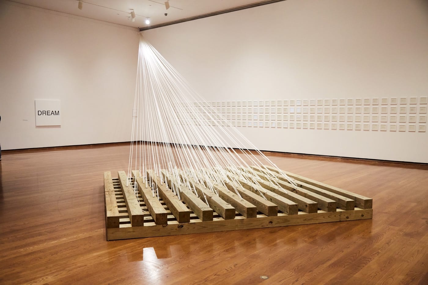 “Mend Piece” (1966/2019) invites visitors to repair broken pieces of pottery using scraps of ceramics manufactured by the now-defunct Syracuse China Corporation, while “Water Event” (1971/2019), a collaborative effort that was originally undertaken for Ono’s earlier Everson show, offers an example of Ono collaborating with other artists, asking them to create or propose ideas for water-holding vessels, for which Ono would provide the imaginary water.