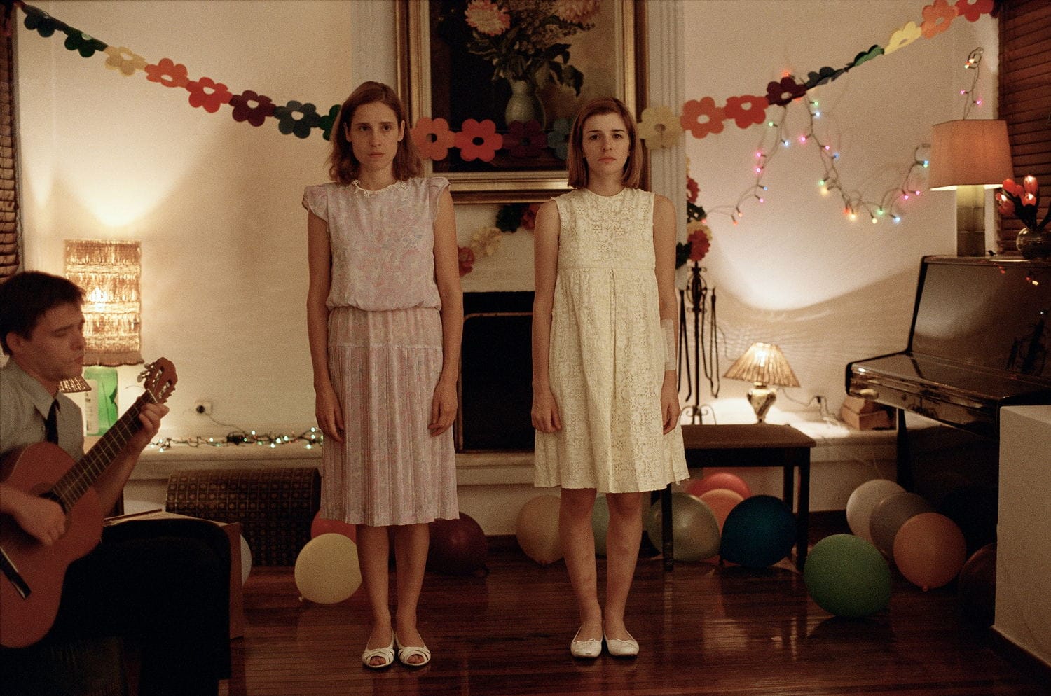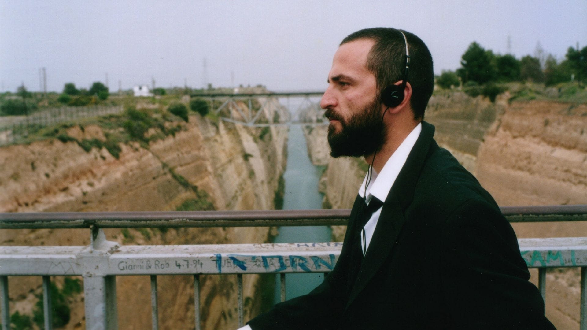 Both Yorgos Lanthimos’s 2005 debut Kinetta and his 2009 film Dogtooth open with cassette tapes. In the former, a man in a disheveled black and white suit stands in front of a sun-bathed stone wall, a pair of old headphones straight out of the mid-1980s hanging around his neck. A woman sings jazzy blues in the background as he stares out at something, which we learn in the next shot is a demolished, overturned car. From the rubble, he retrieves a cassette tape, and the music stops; he then walks away with as much unexplained determination as he had when recovering the tape seconds before.