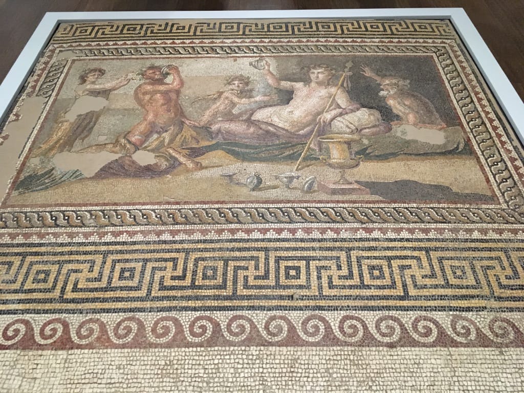 Mosaics with mythical drinking contests or depictions of symposia were common, particularly since when reclining on couches (typically arranged on the ground) one was bound to stare at the floor a fair amount. Floors were in many ways the walls of the ancient world: They gave you art to engage with and chat about as you ate, drank, and waited for the next course.