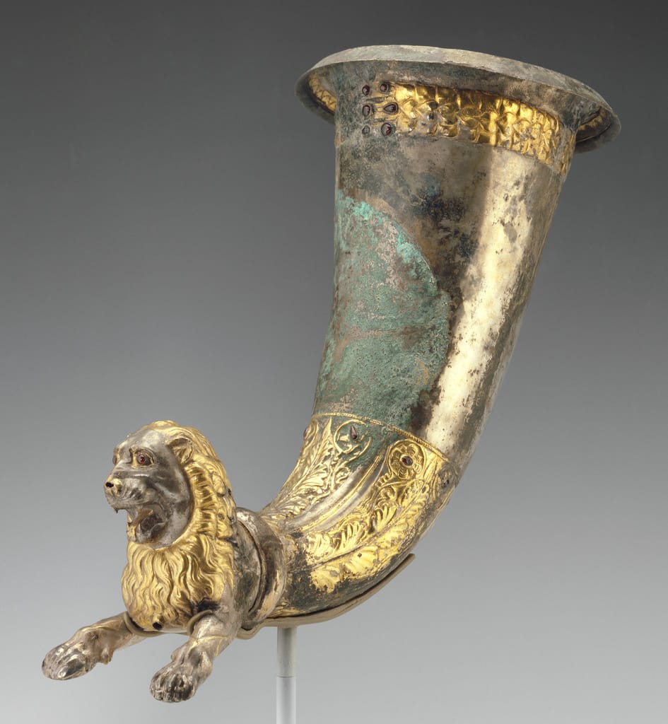 The use of a rhyton as a kind of animal mask during dinner parties would have played into the broader sensory environment. At such events, the smells of cooked meat and mixed wine, the dim light, atrium plants, and ubiquitous artwork within the triclinium (dining room) could all work together to transport a drinker to a place less human and more feral.