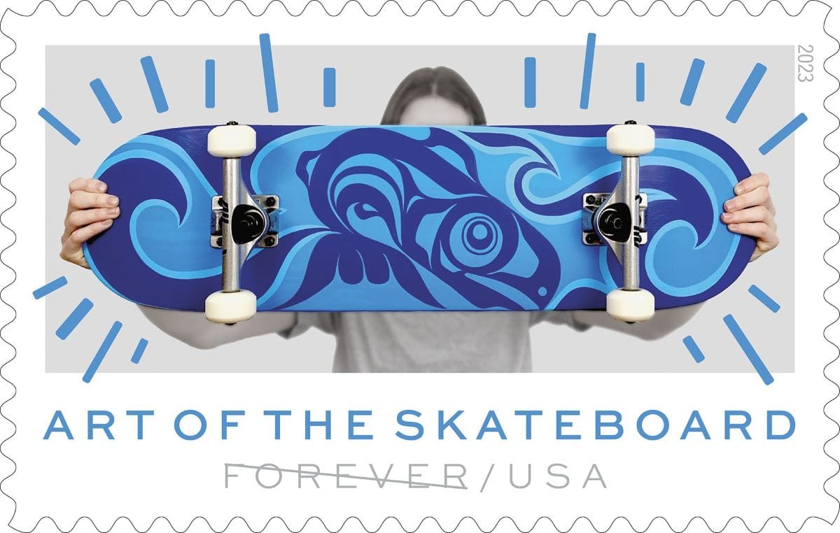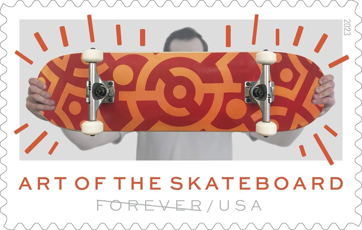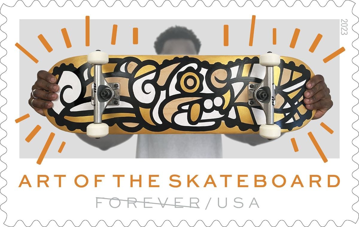 Last October, The United States Postal Service (USPS) announced its lineup of new stamps coming in 2023, which includes several designs spotlighting a diverse array of artists from pop artist Roy Lichtenstein to contemporary artists including Di’Orr Greenwood (Diné) of Arizona, whose work is part of a series called Art of the Skateboard.