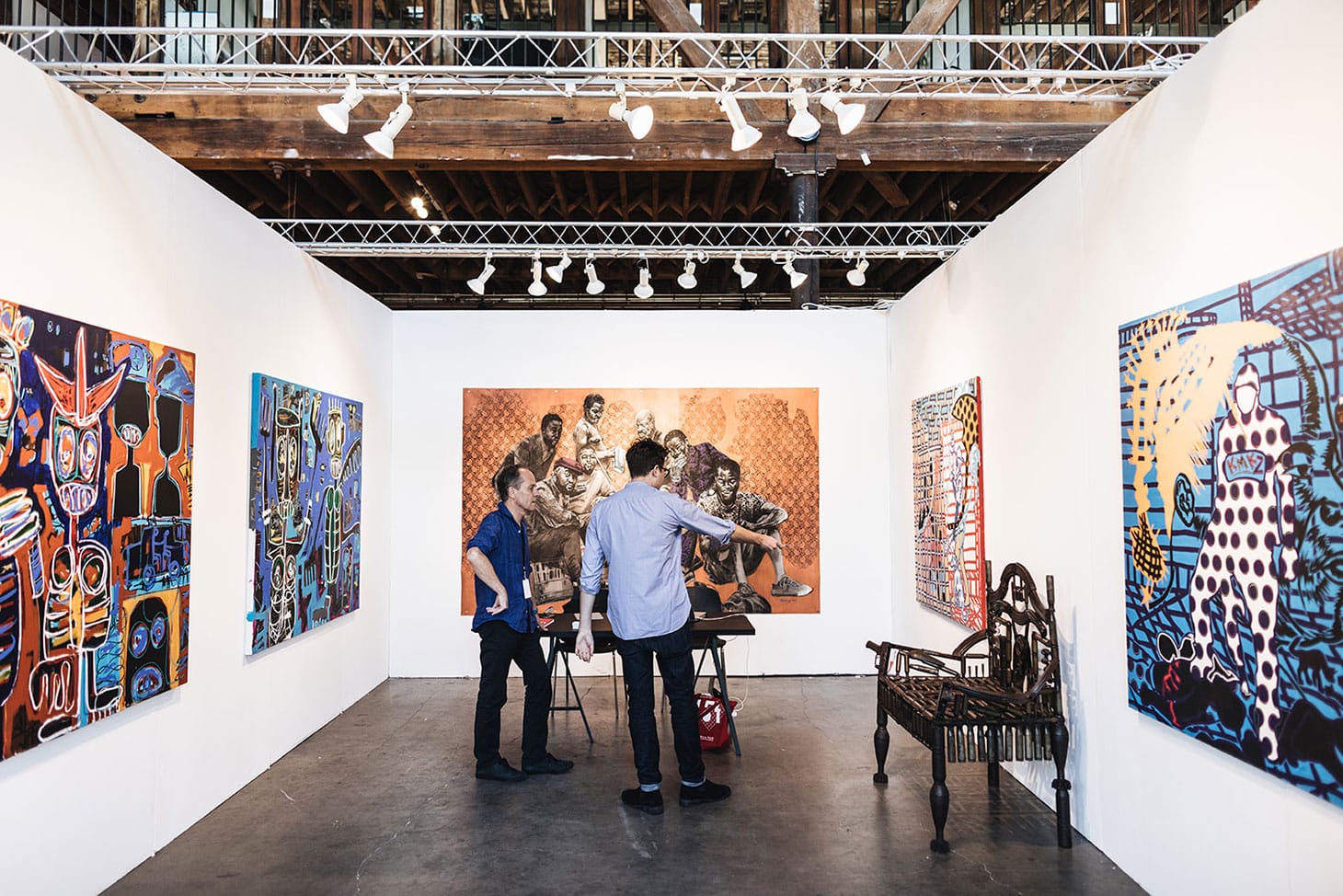 2019 marks the fifth anniversary of the 1–54 Contemporary African Art Fair, taking place at Industria, West Village. The fair features 24 galleries and over 70 artists from Belgium, Côte d’Ivoire, Egypt, Ethiopia, France, Ghana, Kenya, Martinique, Morocco, Nigeria, Portugal, Senegal, South Africa, Turkey, the United Kingdom, and the United States. In addition, this year’s fair includes the 1–54 FORUM, a series of talks and events curated by Black Chalk & Co., an art collective founded by Nontsikelelo Mutiti and Tinashe Mushakavanhu, two Zimbabwean artists. The full FORUM schedule can be found here.