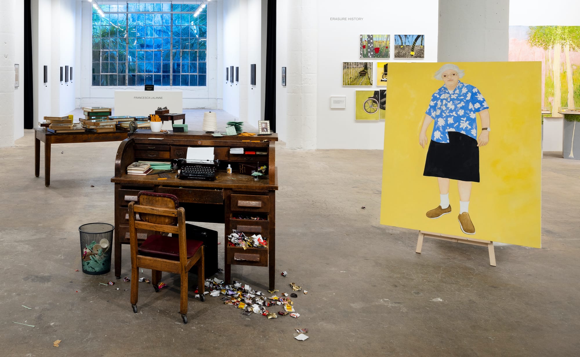 Don’t miss out on this Los Angeles-based artist’s curious and sensitive work. The exhibition is curated by one of Dingle’s characters, Pudgey Pomona, a reference librarian who appears in a blue floral shirt against a lemon yellow background in a portrait at the entrance. The 1962 lime green jaguar parked outside the gallery is also Miss Pomona’s, we are told. Inside, you’ll find a delicate marble collection, a cookie cutter in the shape of Cagliari, Italy, a world atlas of animals, and so much more.