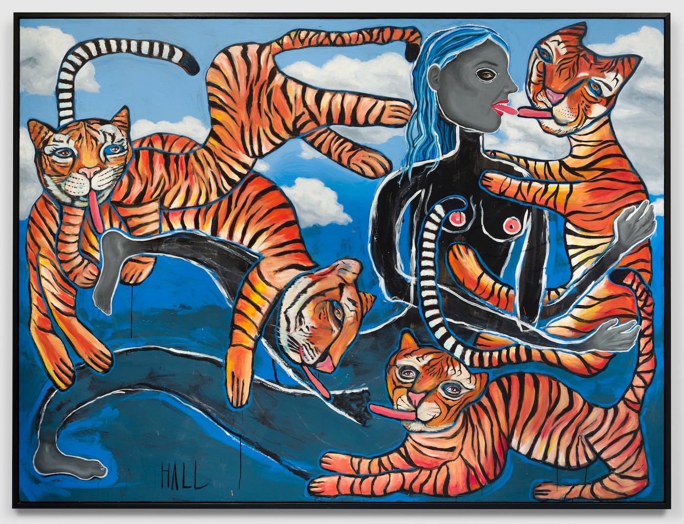 Firing on all cylinders, Trulee Hall conjures her unapologetically erotic visions across multiple media. A scene that begins as a painting might be transformed into a stop-motion animation, then a live-action video, and finally a theatrical performance. Actors are mirrored in cinematic and real space; film props return as sculptures. Part celebratory, queer camp, part playful material investigation, Hall’s liberating, libertine world offers an inviting challenge to staid aesthetics and morality.