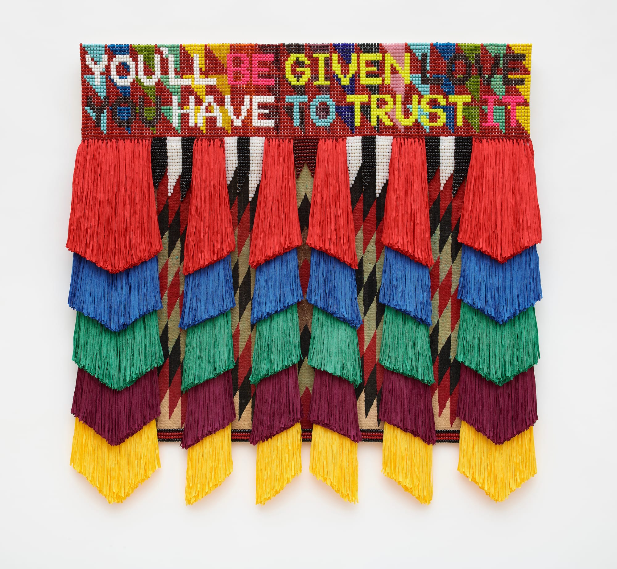 In this joyous display of new work, Jeffrey Gibson homes in on the "unique experiences, struggles and personal victories shaping the current fight for LGBTQIA visibility." The title of the show is inspired by a print by Sister Corita Kent, who, in borrowing a quote by E.B. White ("It can be said of him"), changed the pronoun "him" to "them." It Can Be Said of Them is filled with colorful affirmations: "Yes! We Can"; "They Choose Their Family"; "Bring Down the Walls." Collectively, Gibson's artworks are both a balm and rallying cry.