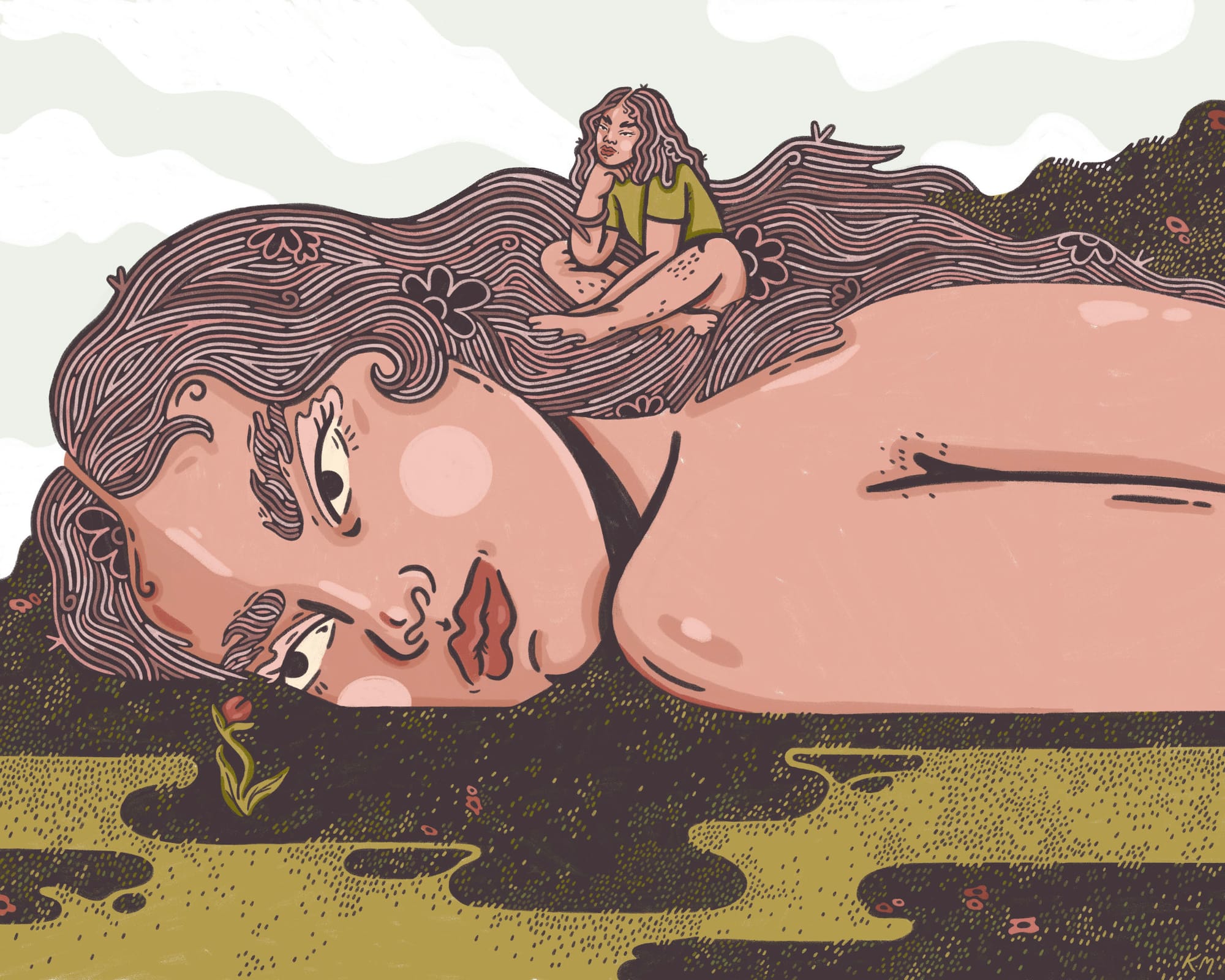 What does it even mean to be a “late bloomer”? Kelly Malka reflects on the human tendency to measure ourselves against others through illustrations of people engulfed in flowers. She says her artworks capture the “aching feeling that I’m doing something wrong: that I’m behind schedule, that everyone around me is moving at an instinctive pace that I can’t seem to uncover.”