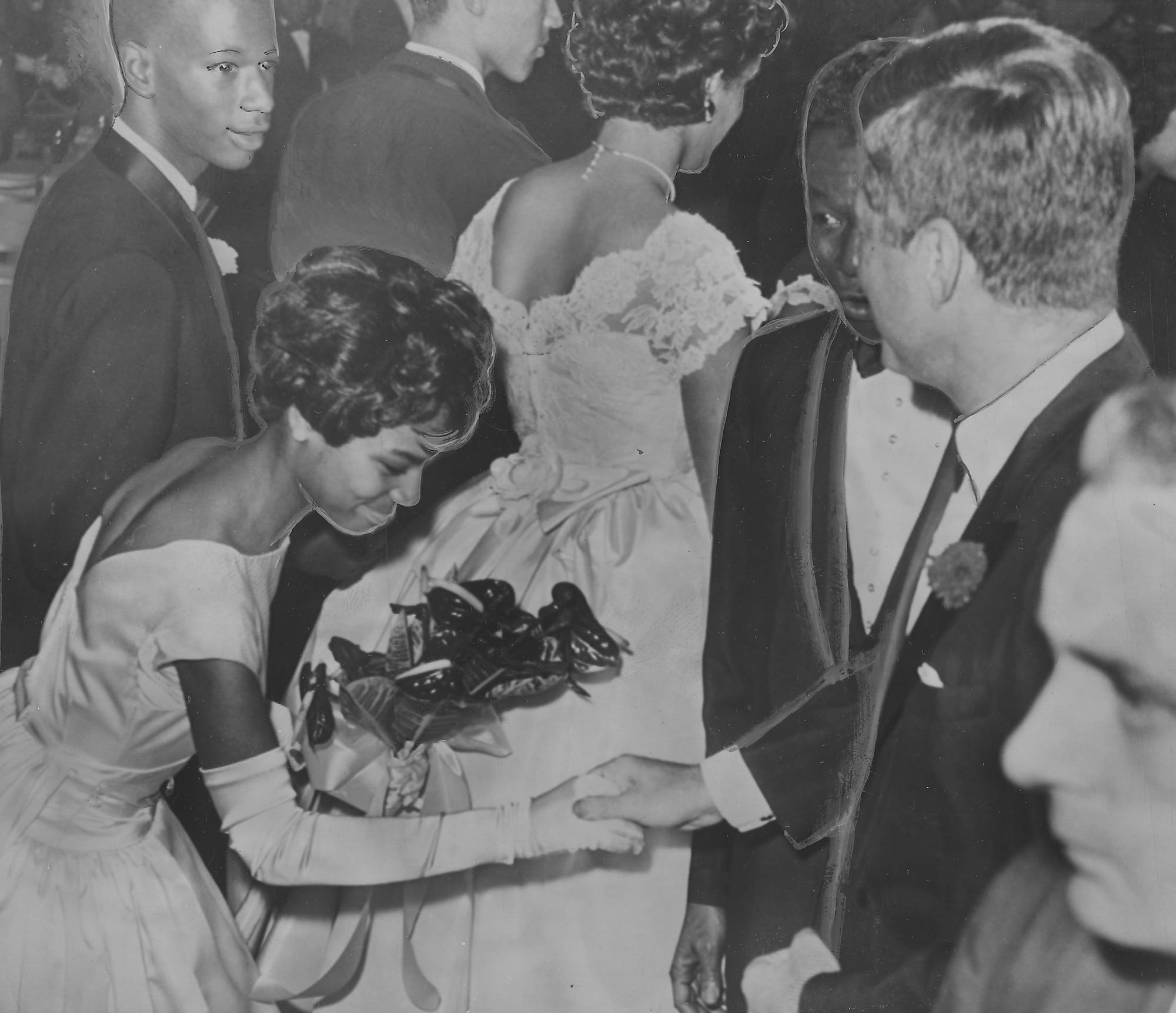 In the photo above, President John F. Kennedy and the great Nat King Cole greet one of 28 ladies at a debutante ball in Los Angeles. The moment would mark "the emergent power of African American debutante culture," the subject of an exhibition at CAAM, which spans from the 1890s to the 1960s, when Black debutantes contributed to the fight for civil rights.