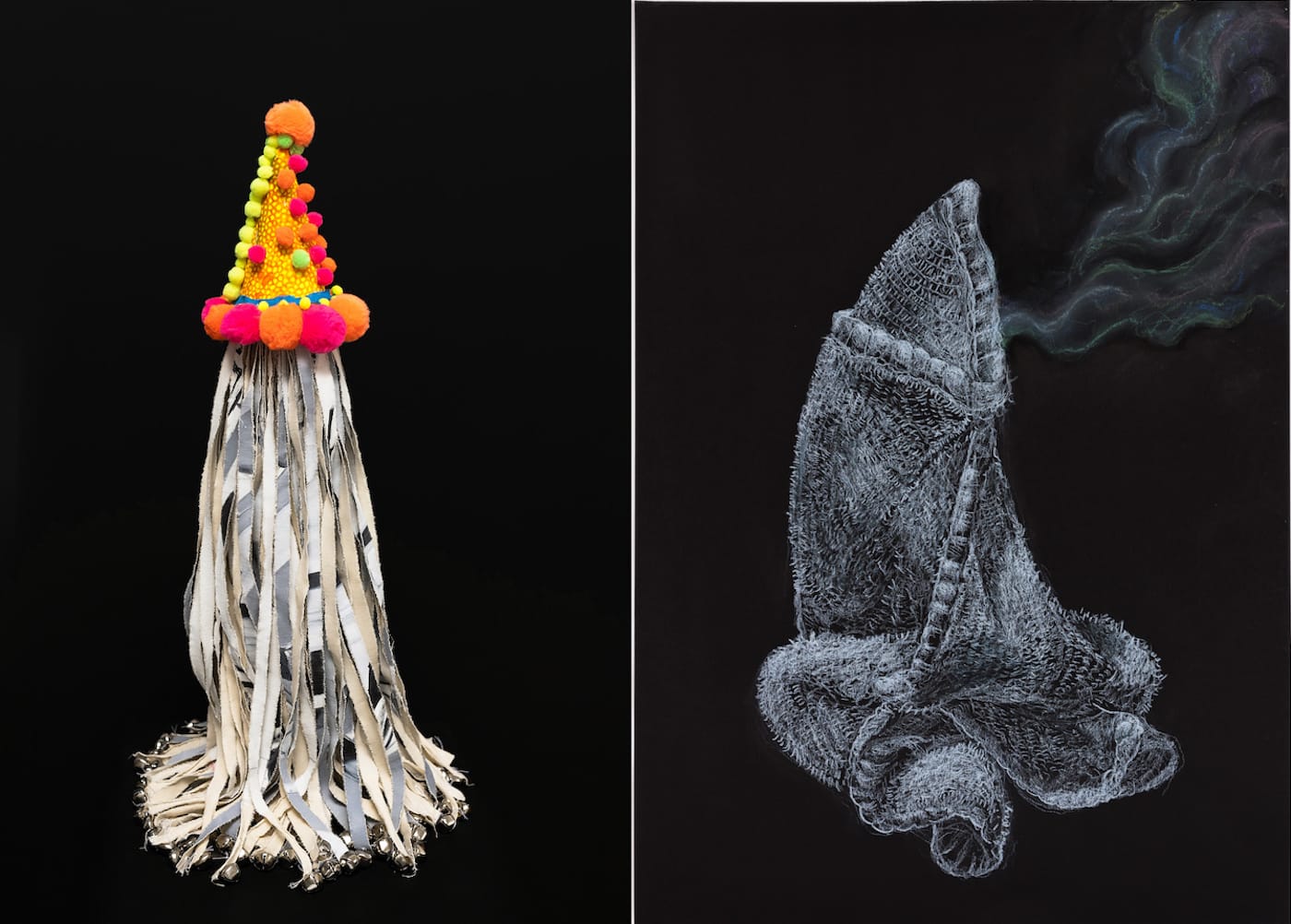 Evidence of Things Unseen juxtaposes the work of Don Ed Hardy and Laurie Steelink who have been friends for 30 years. Hardy is best known for his role in bringing tattooing into the mainstream but he has been focused on his own art practice since retiring from tattooing in 2008. Steelink, who is featured in the current California Biennial at the Orange County Museum of Art, explores her own complicated identity as a Native American raised by an adoptive White family. Her assemblages incorporate powwow regalia with found objects and elements of earlier artworks, imbuing them with humor and a punk aesthetic. Taken together, their works reflect lives dedicated to individual creative searching.