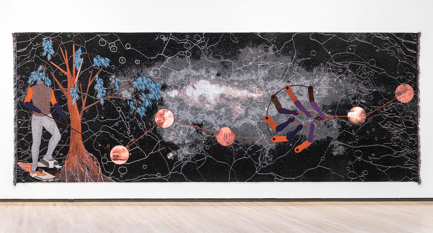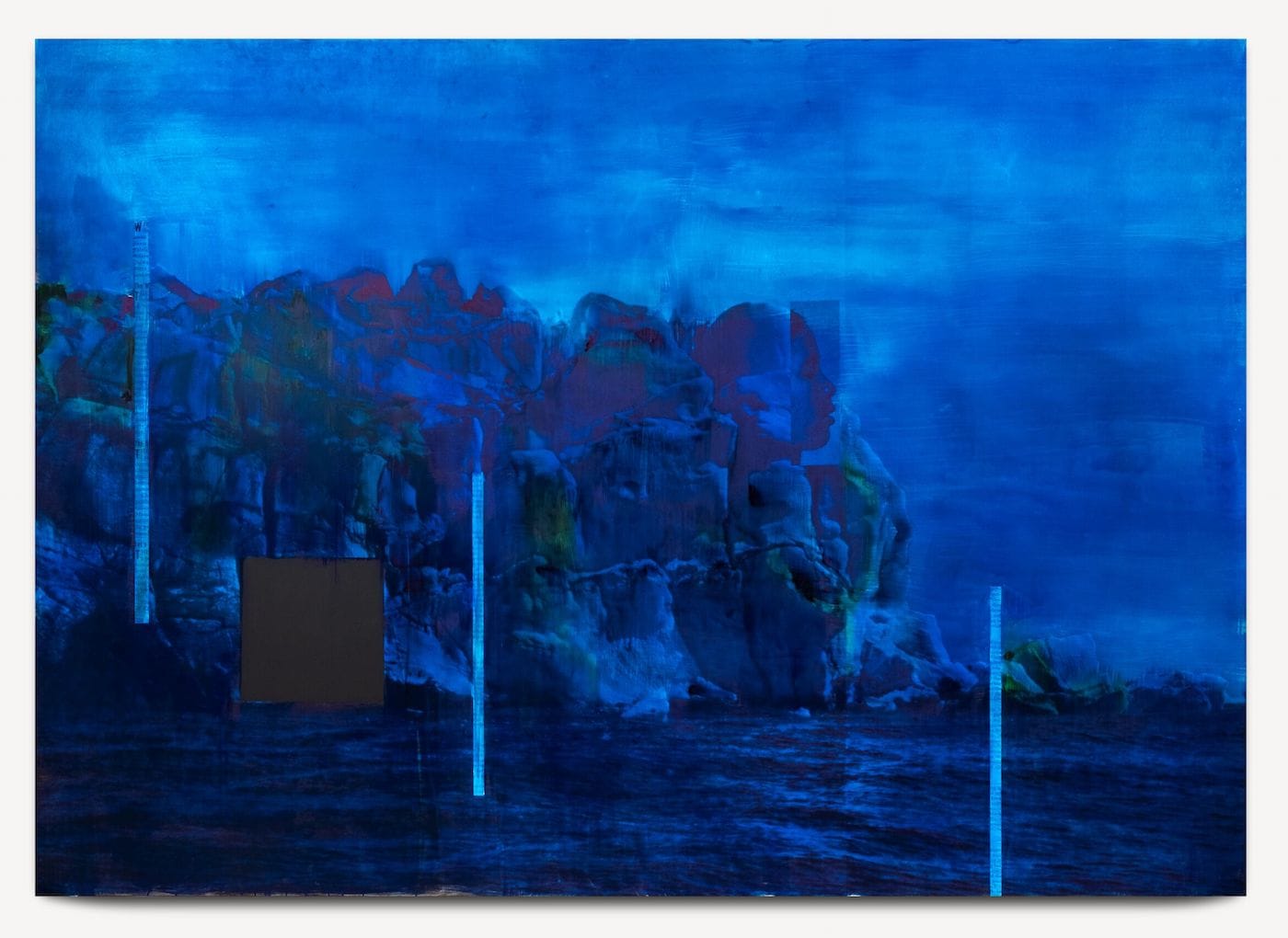Lorna Simpson emerged as a pioneer of conceptual photography in the 1980s, with her juxtapositions of staged photos and text that challenged the medium’s veracity and objectivity. Her current exhibition at Hauser & Wirth, Everrrything, features recent work produced during the pandemic, showcasing the diverse range of materials she has incorporated into her practice over the past few decades. These include large-scale paintings of icebergs, intimate collages mixing images of women cut from Jet and Ebony magazines with scientific star maps, and a courtyard installation of singing bowls resting on stacked piles of slate which produce a collaborative sonic vibration when activated.