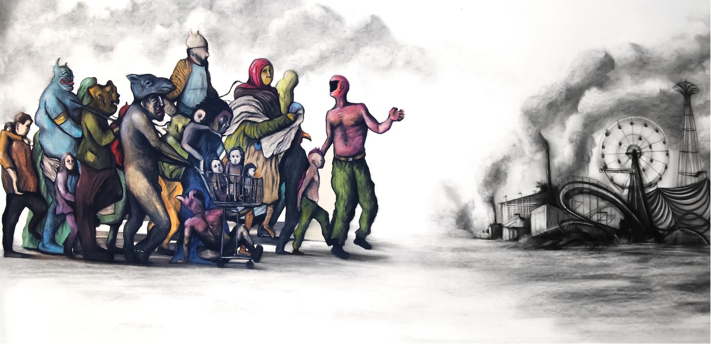 The Charm of the Unfamiliar tells a story of displacement and migration through fantastical characters and imagery to directly engage with current issues surrounding immigration in the US. Artist Pouya Afshar utilizes a wide range of media, from 3D printing and augmented reality, to 19th-century animation and traditional oil painting, to bring viewers along on this journey. Though his migrants may look deliberately "strange" and "alien," they project themes of exile, hope, and the search for home that convey a universal humanity.