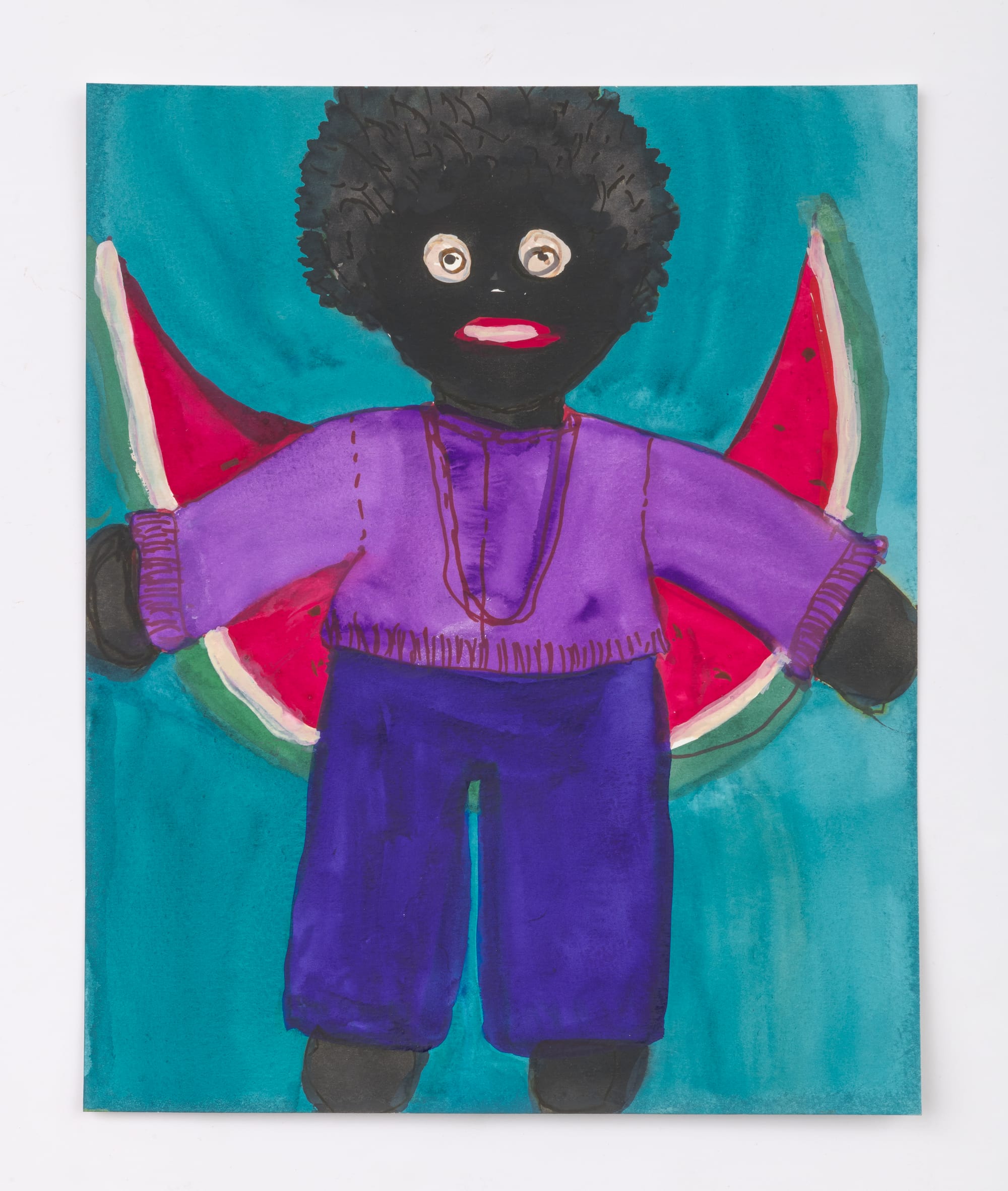 This focused exhibition is a special opportunity to see Saar's new body of work: a series of watercolors of Black dolls, based on the artist's personal collection. The tender dolls, dressed in brilliant shades of pink, orange, purple, and blue, celebrate an aspect of Black American culture that has been historically underrepresented and stretches at least far back as the 1800s.