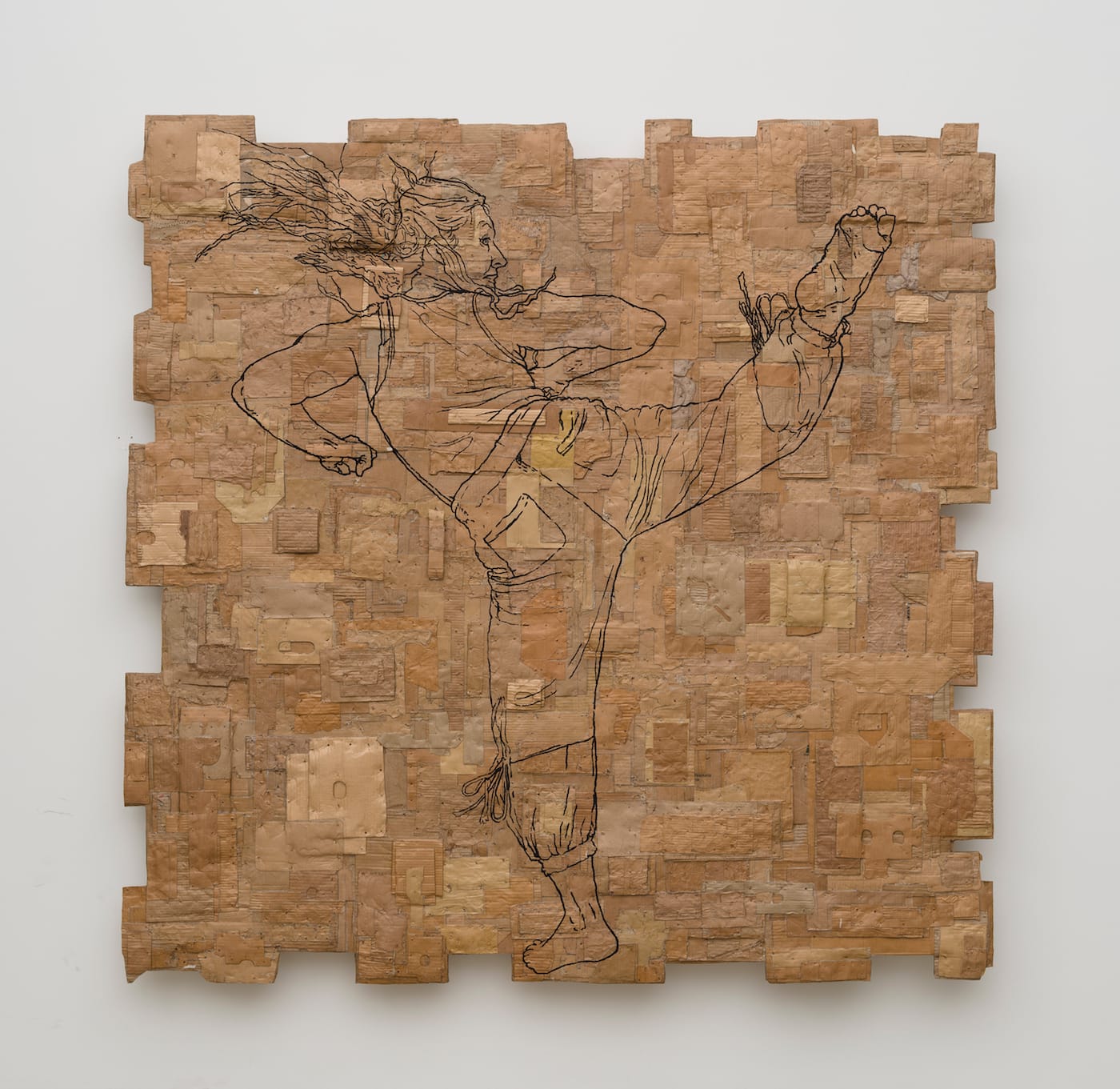 The work of Andrea Bowers addresses issues of social justice and activism, from labor rights to environmentalism, and immigration. In 2012, she created her first series of large-scale works on cardboard, appropriating political graphics from the early 20th century for her show at Vielmetter Help the Work Along. Her fifth show with the gallery, Energy with Intention, features monumental drawings of women practicing various forms of self-defense and martial arts. Caught mid-punch or kick, Bowers’s female protagonists offer unambiguous rejection of patriarchy in all its forms.