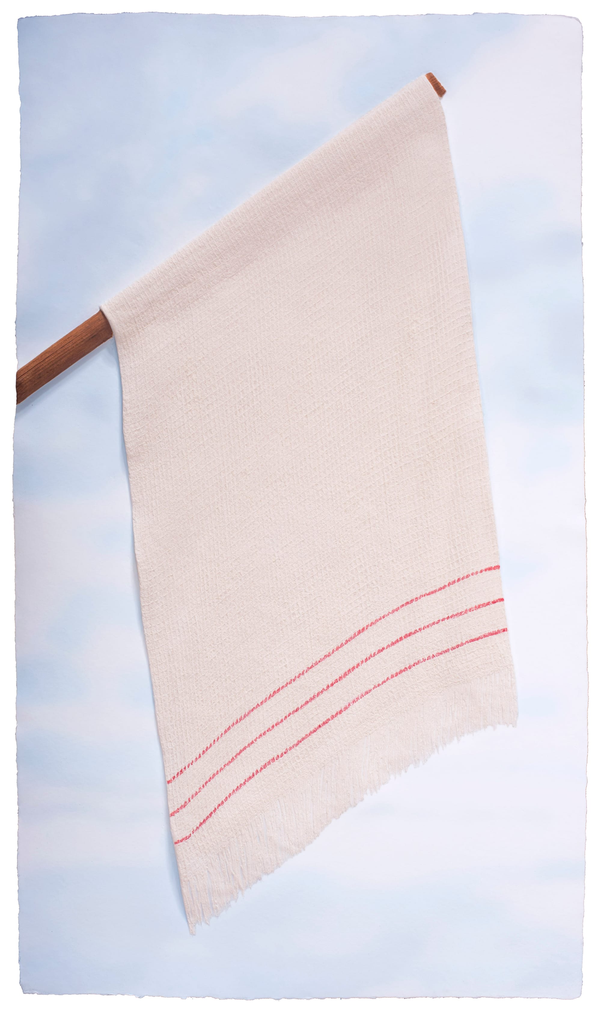 Alongside an exhibition of works by Sonya Clark, Mixografía presents a new edition with the artist: "Confederate, surrender" (2022), an image of the dishcloth used as a flag of truce by the Confederate Army upon their surrender at the Appomattox Court House on April 9, 1865. With this closeup of the kitchen towel — waffle weave, frayed edges and all — waving against the blue sky, Clark asks the viewer to reconsider what it means for the humble rag, and all that it represents, to have been used as the Confederate’s flag of peace, and what it means for it to be flown again.