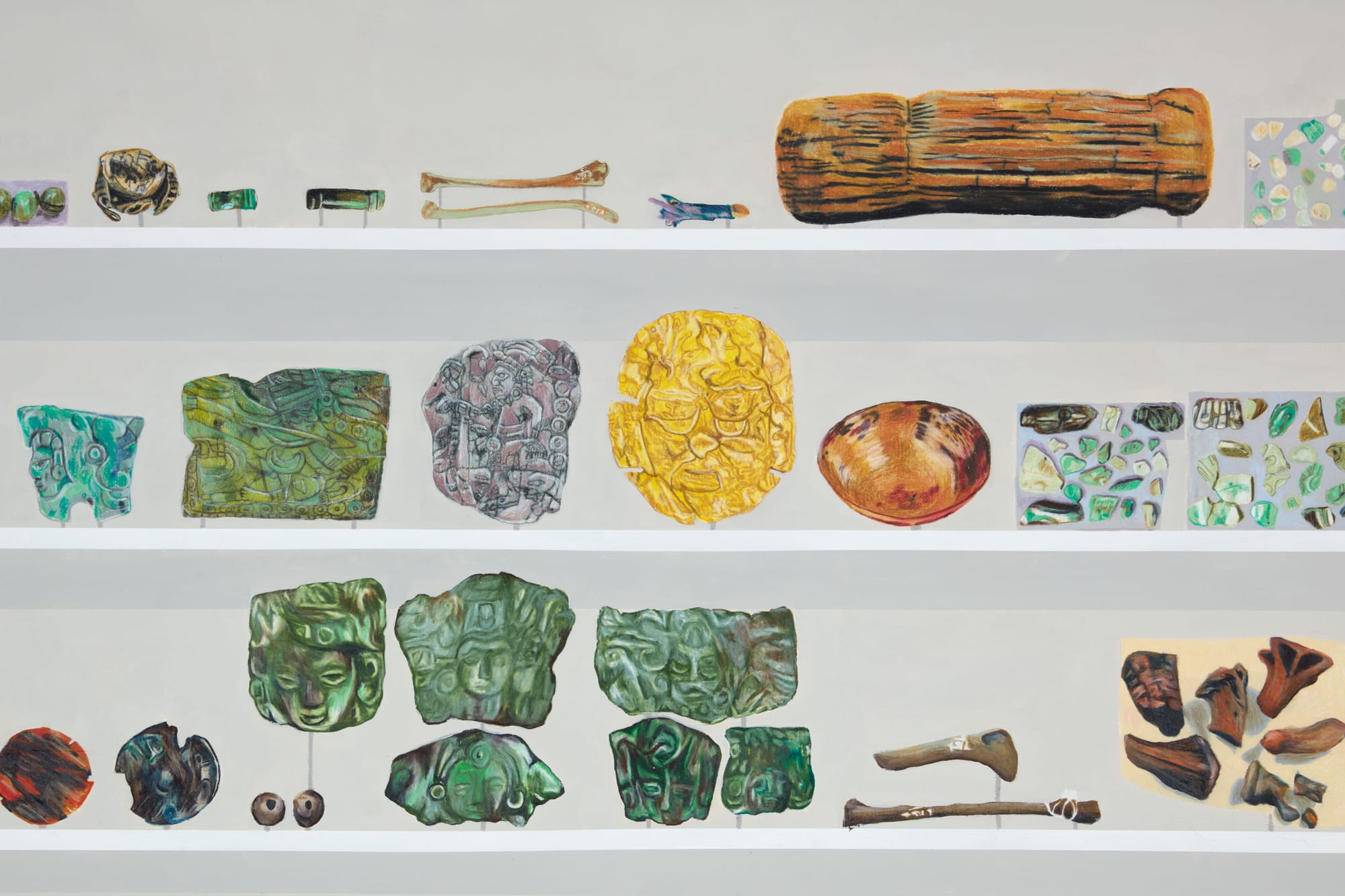 A concept-driven artist born in Bogotá and based in Los Angeles, Gala Porras-Kim has an enduring interest in the institutional treatment and classification of cultural objects, antiquities, and heritage sites. Spanning drawing, sculpture, video, sound art, and ephemera such as letters, news clippings, and books, which are housed in a dedicated research pod, Precipitation for an Arid Landscape brings an incisive eye to the contemporary presentation of a plundered Mexican pyramid, the historical narratives behind a Neolithic site in Turkey, and the Harvard Peabody Museum’s retention of objects dredged from a sacred cenote.