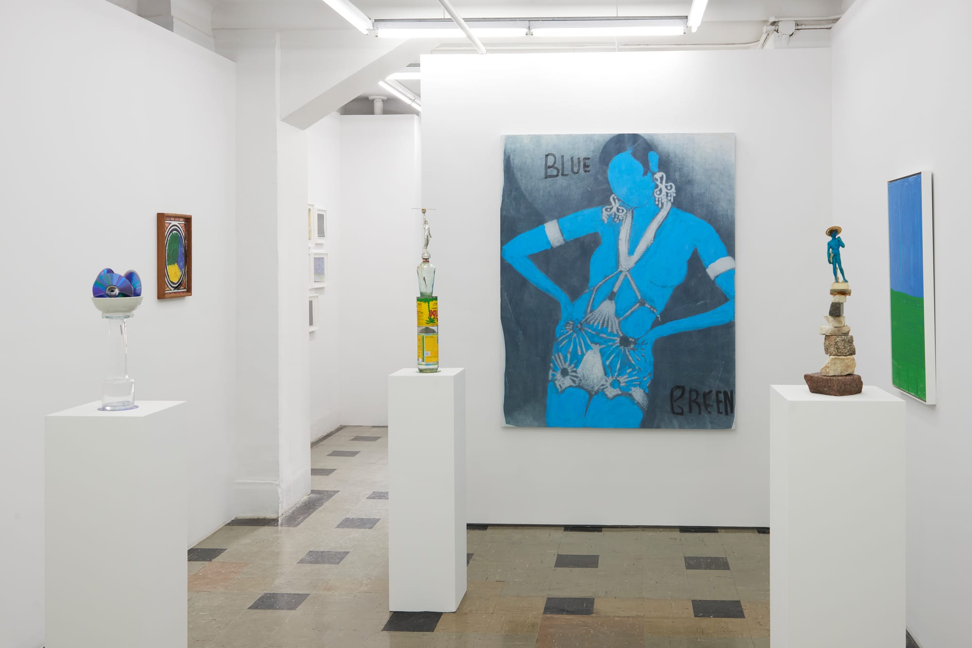 Arriving on the heels of exhibitions at White Columns and Wilmer Jennings Gallery-Kenkeleba, Gordon Robichaux's Gerald Jackson rounds off a series of three New York City shows dedicated to the oeuvre of the octogenarian artist, poet, and performer. The New Jersey-based artist, who emerged in New York’s downtown scene in the mid-1960s, offers up paintings that explore the spiritual dimensions of color, especially blue and green; found object sculptures featuring globes perched atop teapots and figurines haloed with gleaming CDs; and appropriated images that have been reproduced and subsequently altered with chalk, pastel, watercolor, and paint.