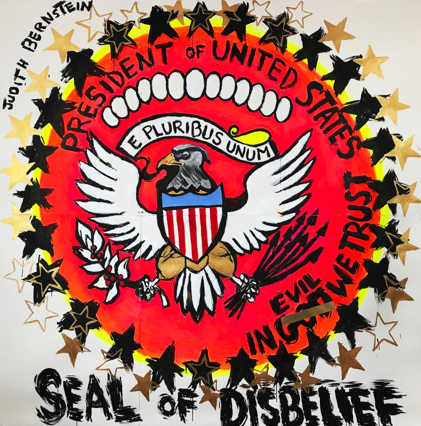 If there’s any artist whose tone and aesthetic are perfectly suited to the cycles of political outrage and shame in which we’re currently trapped, it’s Judith Bernstein, the sketcher of suggestive screws and exploding anatomies. This show marries a body of work made in response to the Trump presidency — including four large murals and free campaign pins — with a group of apt allegorical drawings from 1995.