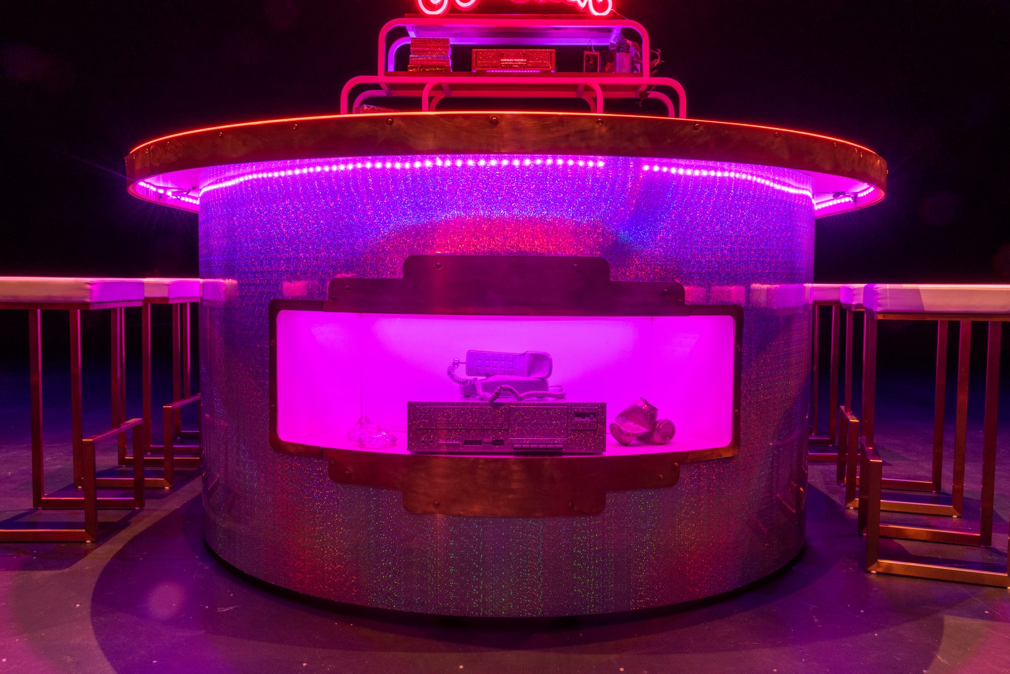 Organized in conjunction with The Studio Museum in Harlem, The New Eagle Creek Saloon presents Oakland-based artist Sadie Barnette's fluorescent recreation of the San Francisco gay bar that her father, founder of the Compton chapter of the Black Panther Party, operated in the early 1990s. On select Saturdays, the architectural installation is activated by DJs invited by queer scholar and artist madison moore as part of The Kitchen's new nightlife and club culture residency; visitors are invited to dance, an homage to queer Black spaces past and present.