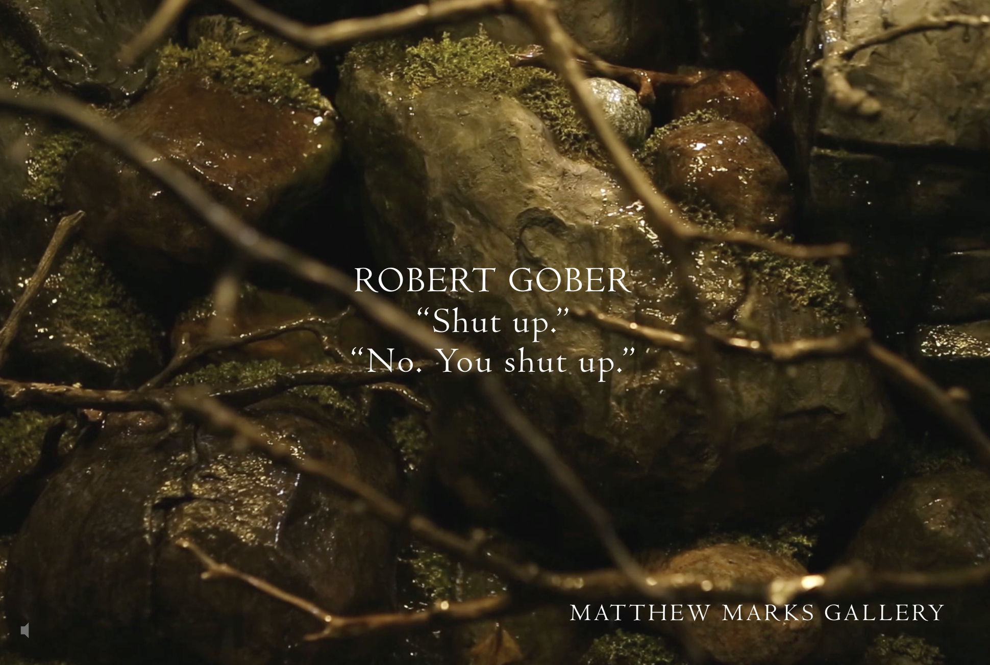 Supplemented by a virtual viewing option, Robert Gober: “Shut up.” “No. You shut up.” presents a selection of recent drawings and sculptures that engage with motifs of windows and apertures, inhabiting the tension between inside and outside. There is a spare, intent poetry to these works, which range from a formal jacket embedded with a square section of diminutive waterfall to a nest containing three blue robin eggs that peeks through a weathered window frame.