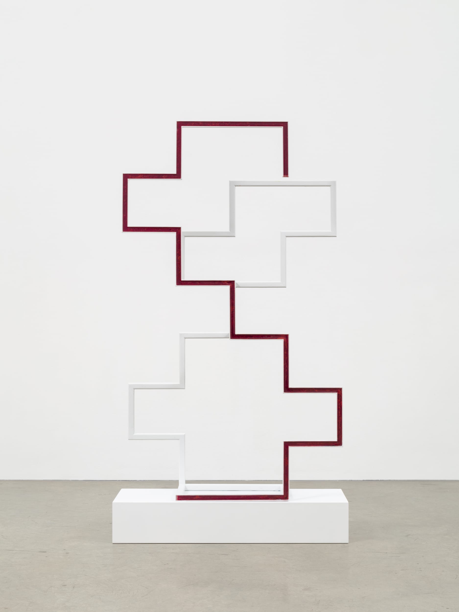 Sherrill Roland’s experience with the US carceral system — he spent ten months in prison before he was exonerated for wrongful incarceration — finds a form in Hindsight Bias, the artist’s first exhibition with the gallery. Characterized by a minimalist, architectonic appearance that belies their more personal content, the works on view incorporate materials that had significance to Roland in prison, including Kool-Aid, personal letters, and a basketball.