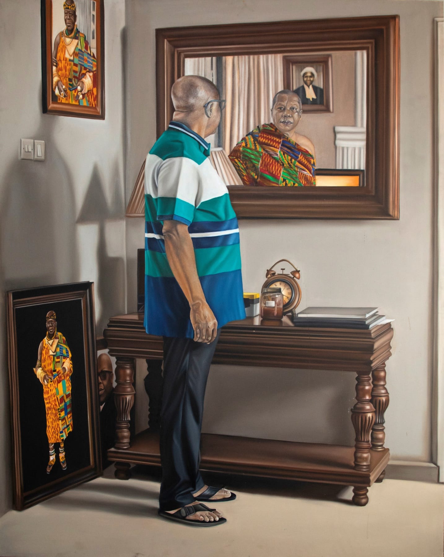 Two contemporary representational painters turn quaint domestic scenes into metaphysical studies of self-reflection. Prempeh and Lee respectively hail from Ghana and South Korea, but a shared theme emerges in their distorted realism. Prempeh's subjects gaze into mirrors, windows, and painted compositions, seeing in them an idealized version of themselves. Meanwhile, Lee's domestic scenes blur all facial and bodily details, as if anyone could inhabit these spaces. Presented together, the works in Portals subtly critique our own complacency and dare us to dream bigger.