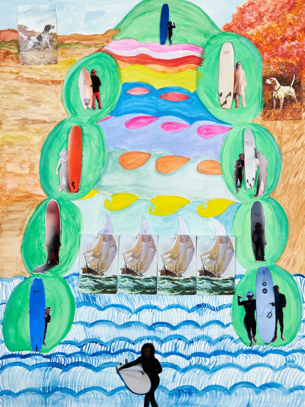 The narrative works made during Gwen Smith’s recent Baxter Street residency portray an “origin story” — one in which the chance of encountering a “white whale” leads the artist to the precipice of personal freedom. A series of colorful, fluid mixed-media works incorporate towering blue ocean currents, images of slave ships, and themes from Herman Melville’s Moby Dick, as if Smith is herself surfing a wave of self-discovery. A meditation on the life cycle and the process of art-making, The Chance Whale conveys the thrill of the ride.