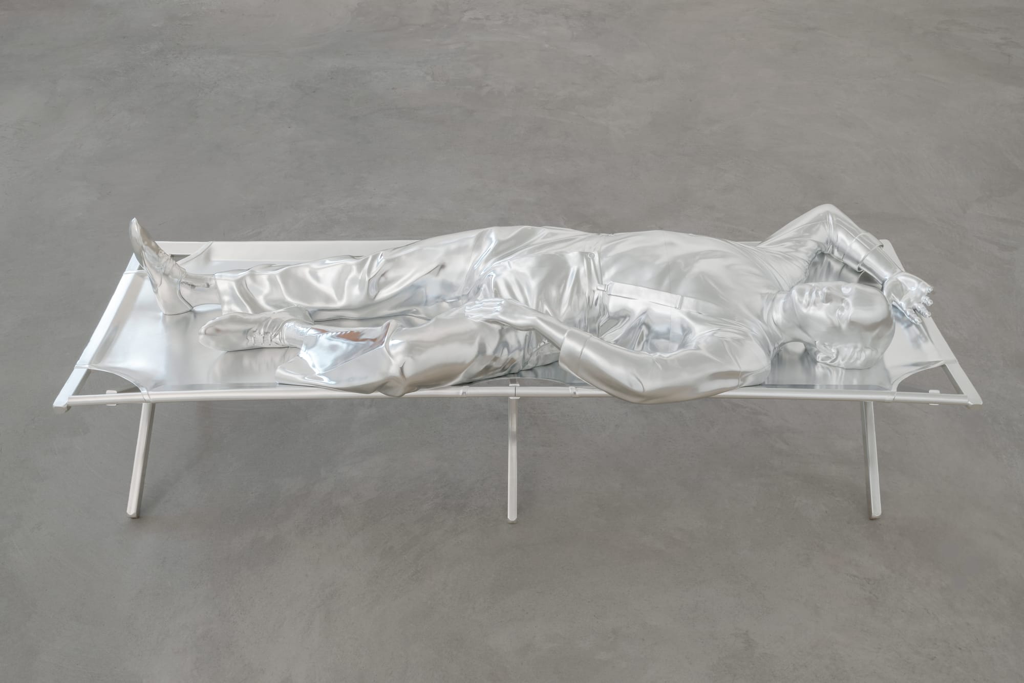 Quality trumps quantity in this spare presentation of 3 photos and 16 sculptures, spanning five decades, by Los Angeles-based artist Charles Ray, a "sculptor's sculptor" who has produced around 100 works total over the course of his career — and is currently also the subject of exhibitions at Glenstone, the Centre Georges Pompidou, and the Bourse de Commerce. Spaced apart in an echo of the artist's dictum "Space is the sculptor's primary medium," works on view in this focused survey range from an open aluminum box that riffs on the Minimalist cube to stainless steel figures referencing Mark Twain's Huckleberry Finn, a complex and problematic American cultural touchstone.