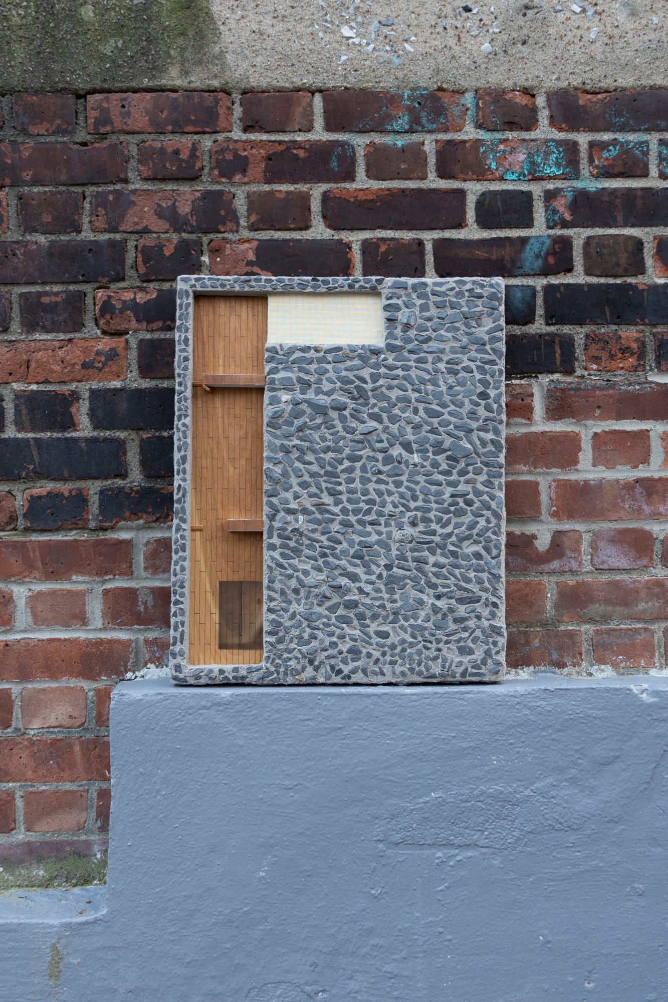 With a focus on 19th century tenement housing built with working class, immigrant, and non-White inhabitants in mind, Tenet, or the collaborative New York duo Julia Eshaghpour and Kevin Hollidge, consider New York City's layered pastiche of architectural styles, in which various social, material, and aesthetic histories awkwardly abut one another. Droll architectural sculptures and assemblages — a pillar is inexplicably made of fruit, a pipe snakes like a living thing — underscore the strange animacy of buildings.
