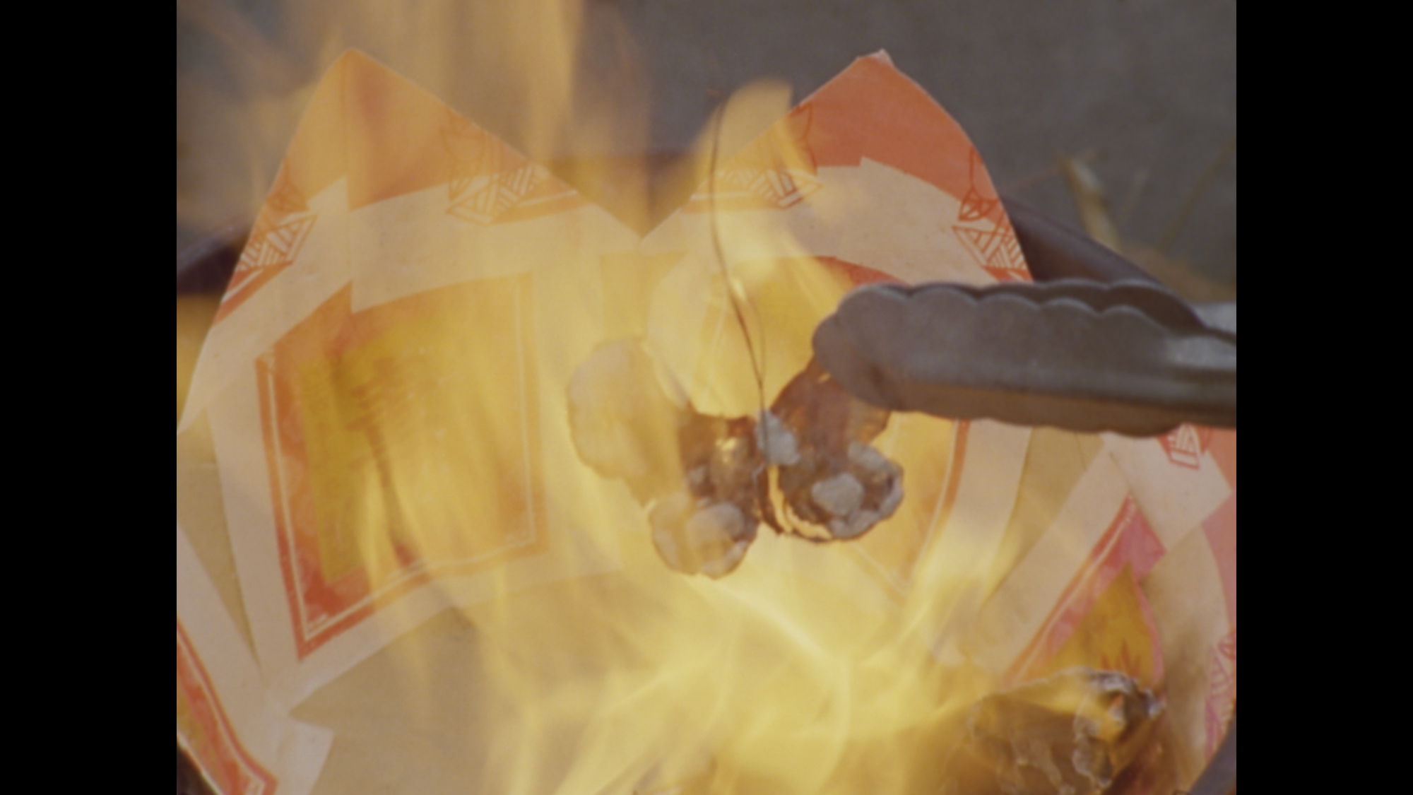 In their 16mm film of paper butterflies ablaze in a community garden alongside the FDR not far from the Chinatown gallery, collaborators Amy Lien and Enzo Camacho explore diasporic resilience and the reclamation of autonomy through communal cultivation of land otherwise used for capitalist purposes or considered architectural dead space. Signaling regeneration, the diaphanous butterflies also appear in the gallery space with skulls, all made from paper composed of organic material such as onion skins, cherry blossoms, and banana peels.