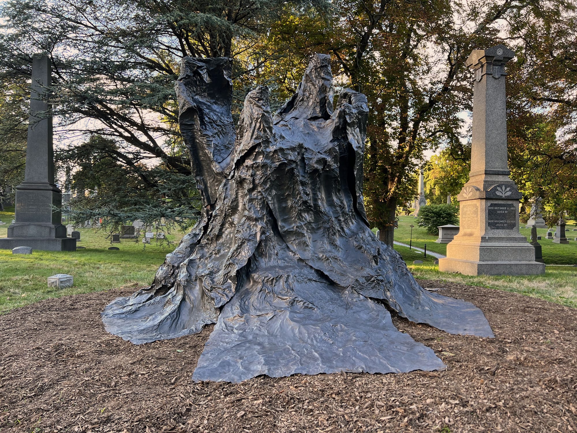 Lakota-Ojibwe artist Athena LaTocha is exhuming what lies beneath the Brooklyn cemetery’s surface in her latest installations, which are displayed atop Battle Hill and in Green-Wood’s Historic Chapel. The Remains of Winter may seem like a bizarre name choice for early autumn, but it is more a poetic allusion to death and decay. LaTocha composed her shapely sculptures with beech trees and lead to resemble earthen developments over millennia. A study of shifting terrains beneath our feet, LaTocha makes this place of eternal rest feel like a small blip in the land’s greater history.
