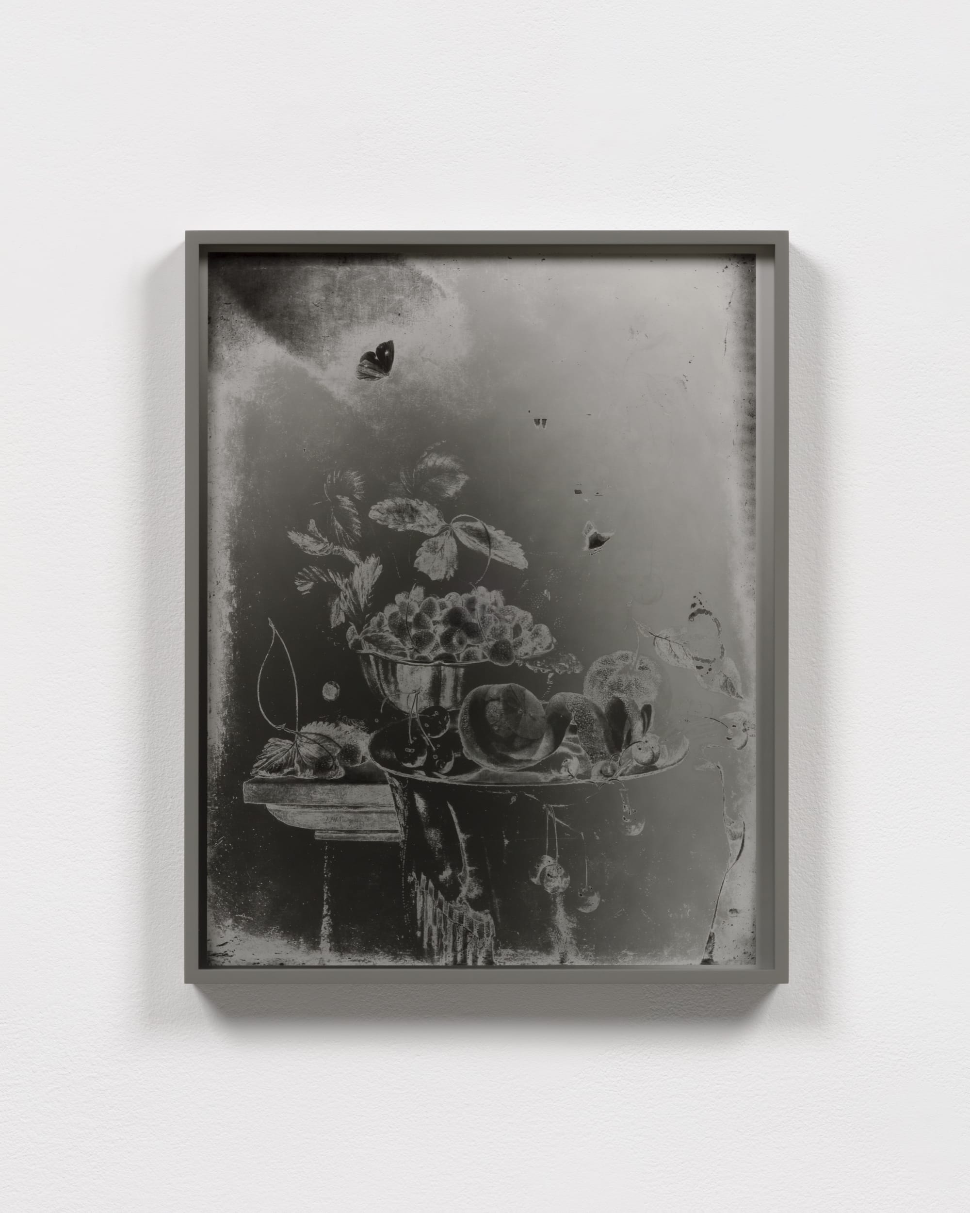 The Third Reich imposed incalculable damage on the legacy of Jewish modernism. Many Nazi-looted artworks have been recovered over the years, but a significant amount remains in secret locations or otherwise expired. Spolia, named after the Latin word for “spoils,” focuses on the latter, recreating spectral versions of artworks that were never recovered. Oppenheim’s cold, gray photographic works draw from the records of the Nazi Party’s Einsatzstab Reichsleiter Rosenberg task force, which museums and European governments still consult through the ERR Project, to portray the grave and bitter nostalgia of restitution.