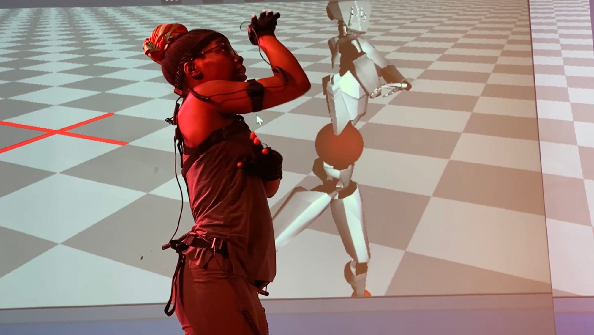 LaJuné McMillian’s dynamic Black Movement Library series synthesizes the Black radical tradition and political unrest today. Using archives of motion-capture data collected from misrepresented Black performers and character base models, McMillian recreates their movements while wearing perception neuron motion-capture suits. Recordings from their many public workshops and performances with artists Roobi Gaskins, Renaldo Maurice, Ntu, Roukijah Rooks, and RaFia Santana show the Brooklyn Public Library’s entire facade illuminated as they dance to a crowd of onlookers. Drawing from archival footage of peoples’ movements around the world, McMillian’s work collapses the time between revolutions, warning us how quickly the inroads can be reversed.