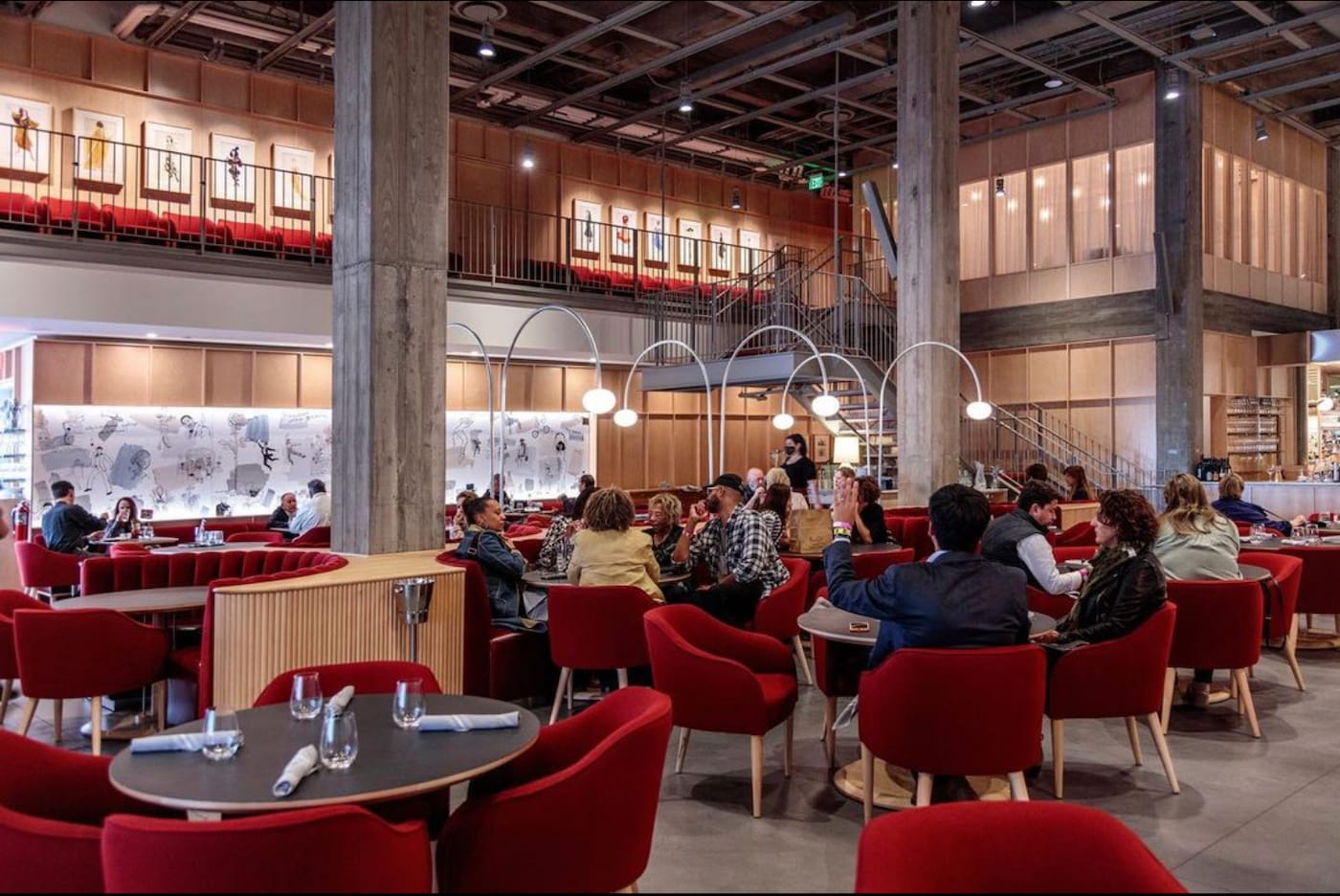 Named for iconic film actress and comedian Fanny Brice, Fanny's at the Academy Museum gives old Hollywood a contemporary makeover with an interior inspired by bygone eateries like the Brown Derby, courtesy of Commune Design. By day, the café and bar serves museumgoers a selection of baked goods (fig and salmon tartines) and heartier fare like lamb-chicken meatballs. After the museum closes, the restaurant cranks up the Tinseltown charm with a deal-maker's dinner menu of pasta, fish, and exponentially expensive steaks that culminate in the $155 Aspen Ridge Beef T-Bone. In conjunction with the Academy Museum's newly opened exhibition focused on Francis Ford Coppola's The Godfather (1972), Fanny's offers a "Godfather Menu" for Sunday dinner featuring "Don Vito Corleone's Bread and Olive Oil," "Mickey Cohen's Sticky Ribs," or gelato, which they've dubbed "revenge" — a dish best served cold. (Tragically, they missed a couple of perfect opportunities — may I suggest "Luca Brasi Sleeps with the Whole, Roasted Fish" and "Leave the Gun, Take the Cannoli"?)