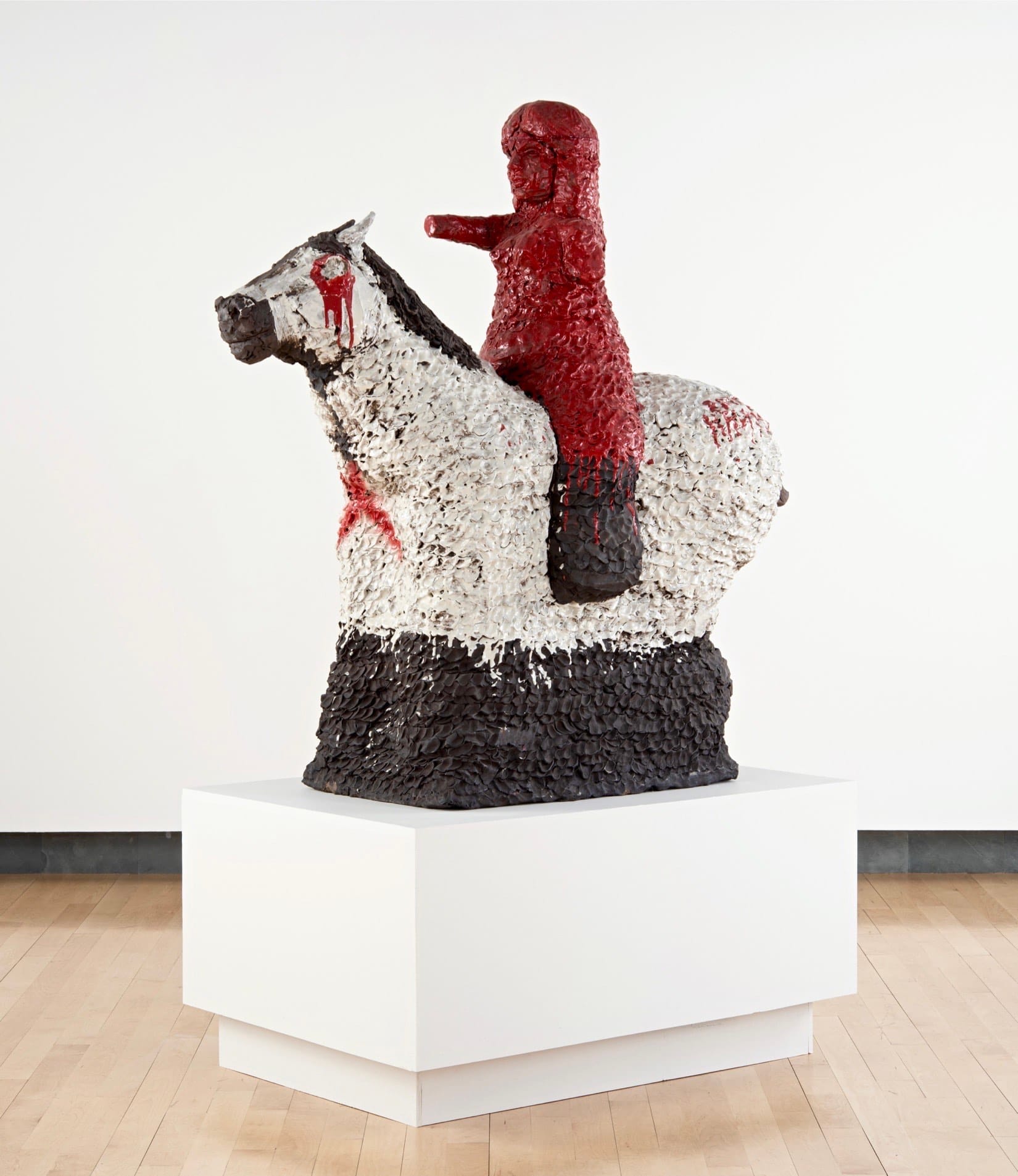 Caddo Nation painter and sculptor Raven Halfmoon’s solo exhibition consists of both new and past works that are monumental in scale and rife with symbolism. Sampling from myriad Indigenous and Aboriginal traditions and aesthetics, Halfmoon’s stoneware sculptures reference her matrilineal heritage as well as traditions and histories of the Caddo Nation through portraiture, handmade impressions in clay, recurring imagery, and deeply intentional glazes and color choices.