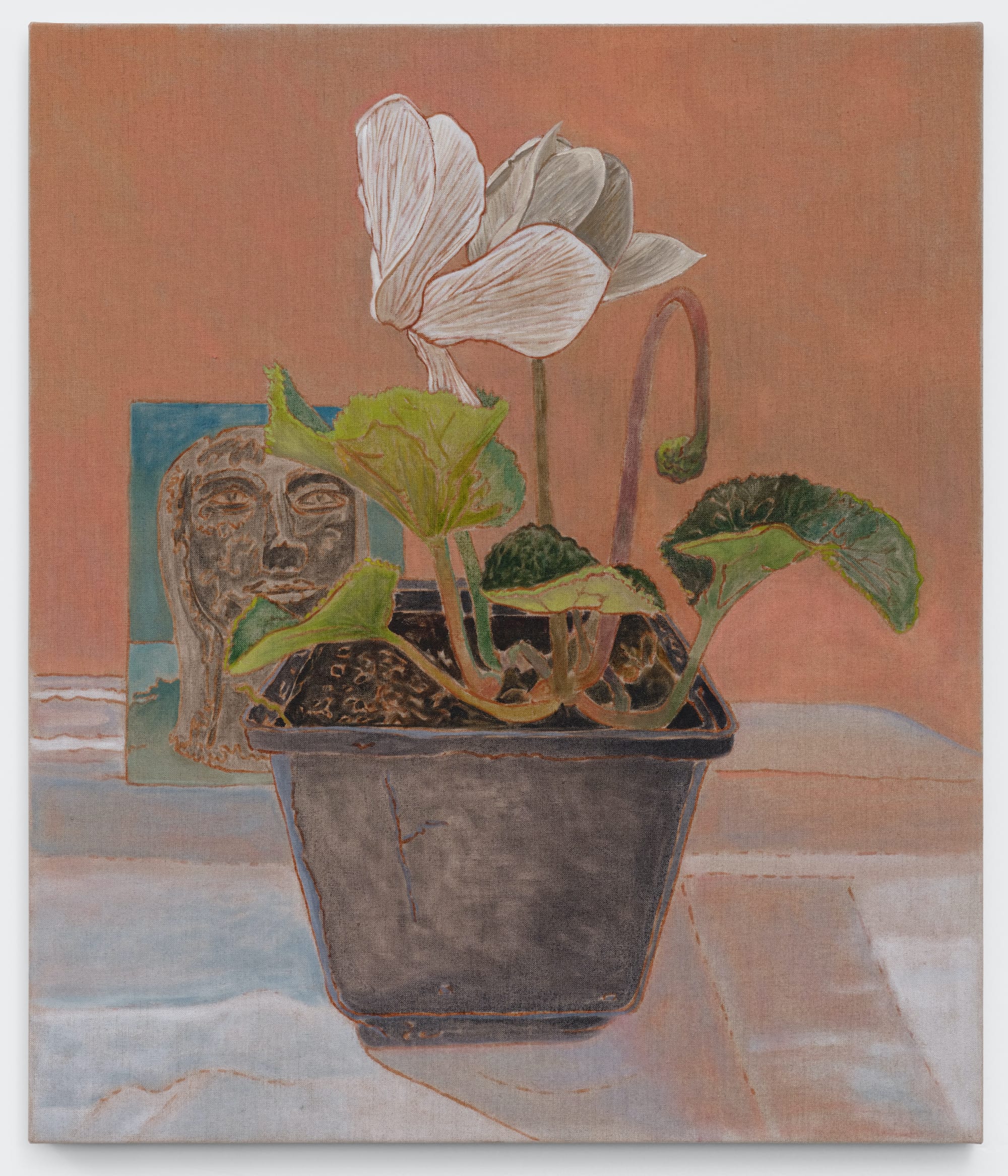 Barker is one of the newest artists on Night Gallery’s roster and is making her solo debut. She made the works on view while attending a residency at Laguna Castle, an apartment complex in Echo Park that was once home to community activist Isa-Kae Meksin. Inspired by the lush garden Meskin cultivated on her property, personal belongings left after Meskin’s passing, and photographs, Barker created a new series of paintings that memorialize Meskin’s quotidian habits.