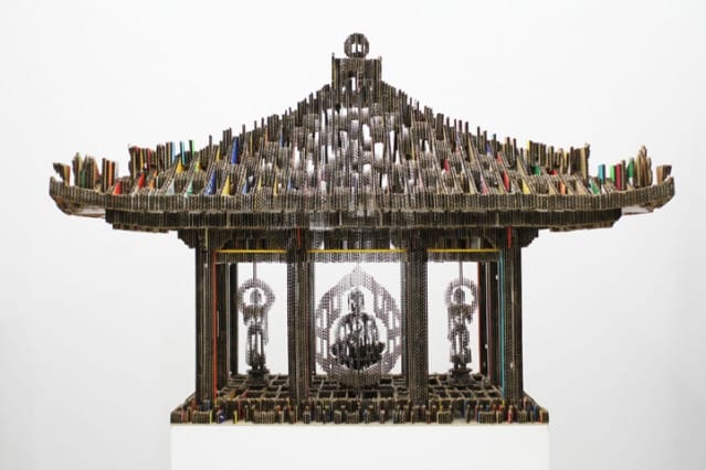 Honbori has always been interested in recycled materials, but not in a devotional way. He got his start making large-scale sculptures out of wood from demolished houses. But it wasn’t until 8 years ago when he was working with wood from a demolished temple that he got the idea. And since then he’s been fascinated with how one man’s trash can be another man’s treasure.