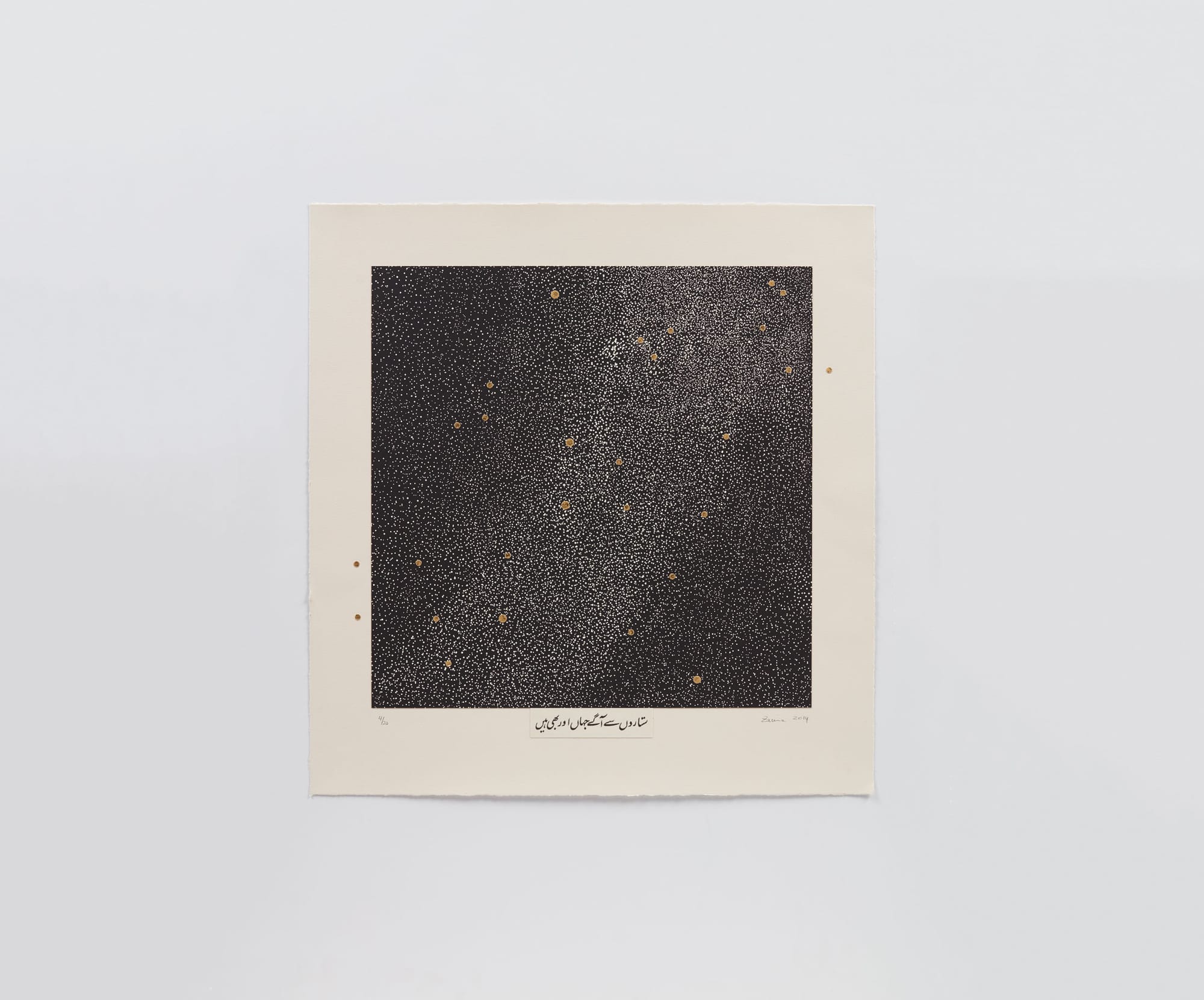 Zarina’s practice, as demonstrated by the 32 works on view in Beyond the Stars, managed to walk a tight line between a visual idiom fully embedded in the Urdu language, South Asian histories, and Islamic and Hindu mysticisms, while never falling into a too-close relationship with national identity. And why would she? She was born in an India that ceased to exist after 1947, when it was ripped in two.