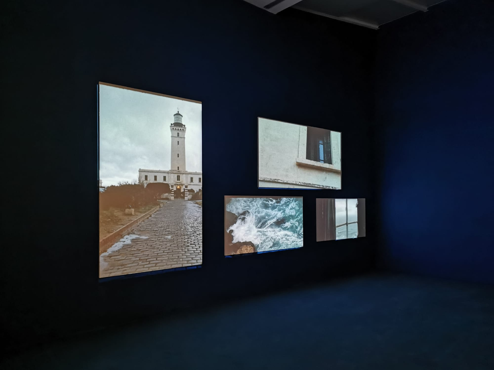 The exhibition opens with a particularly breathtaking piece. For Lighthouse in the Sea of Time (2010), a darkened room invites the viewer to immerse themselves in the history of two lighthouses in Algeria — Cape Sigli (1905) and Cape Caxine (1938) — both monuments from the colonial period. Their histories are explored through videos projected onto three separate walls. The first shows footage of the lighthouses and their serene environments on the southern Mediterranean coastline; the second documents an interview with Krimo, the lighthouse keeper at Cape Sigli since 2005, whose stories of Cape Sigli’s history and his everyday life there flow together. The third and final video explores the history of Cape Caxine through archival materials such as logbooks and visitors books. As Sedira notes in the exhibition catalogue, “I use two-dimensional documents, oral histories, and landscape imageries, and alter them into three-dimensional visual narratives.” This installation is an excellent introduction to Sedira’s work, exemplifying her brilliance in weaving together oral histories, archival material, and the present context of the lighthouses, to provide an intimate portrait of cultural heritage and the role archives play not only in providing information, but also in the desire for a connection with one’s roots.