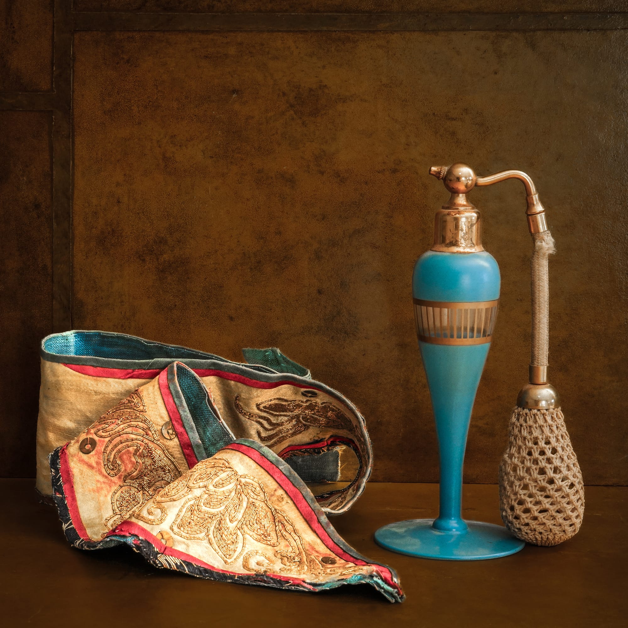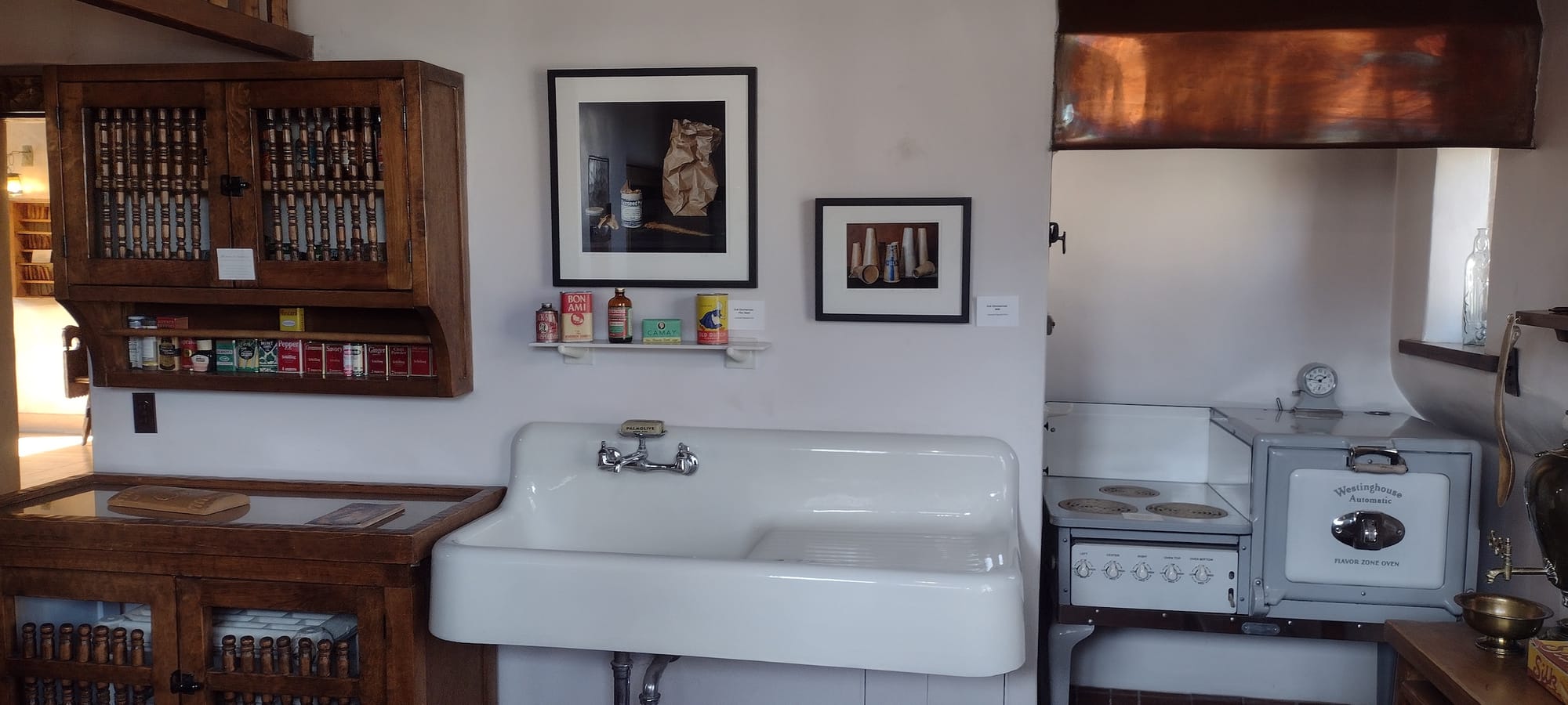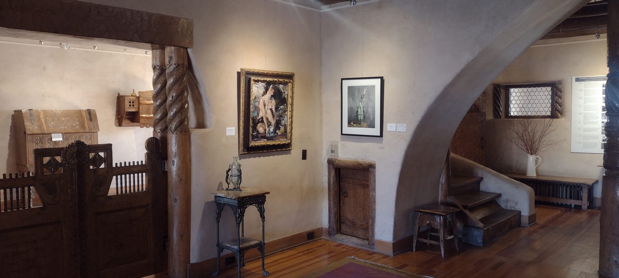 As the title implies, the exhibition is unapologetically sentimental and nostalgic. Installed throughout the house, Zimmerman’s richly colored archival pigment prints hang in close proximity to Fechin’s paintings and to the very objects depicted in the photographs: a vase, a music box, a bar of soap. Zimmerman also makes great use of humble materials such as a tissue stuffed into a glass bottle and a crumpled brown paper bag, their textures, folds, and hues lending themselves to reminiscences of lives lived and days gone by.