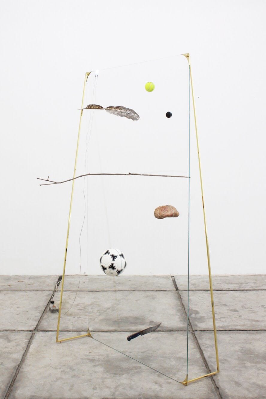The demolished sculpture, “Nimble and sinister tricks (To be preserved with out scandal and corruption) I” (2018), bears a curious resemblance to Marcel Duchamp’s seminal glass work “The Bride Stripped Bare by Her Bachelors, Even (The Large Glass)” (1915-1923). Duchamp’s sculpture also suffered damage when it was shattered during transit; ten years later, the artist repaired the broken fragments himself and found that he enjoyed the visible cracks in the mended surface.