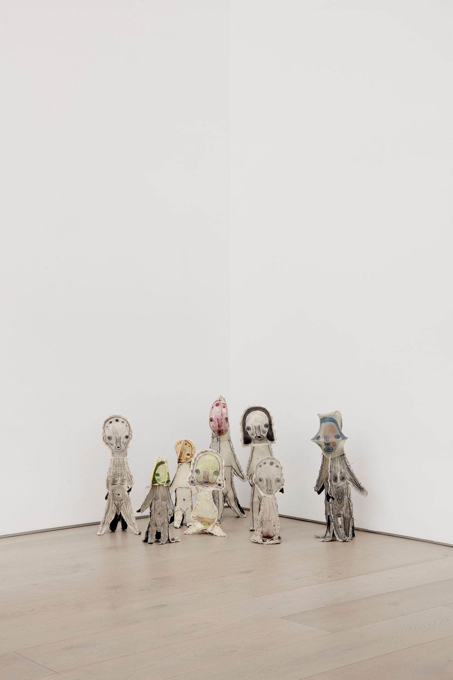 The exhibition transforms the gallery spaces into a domain inhabited by otherworldly figures. Everywhere we look, one or more spirits looks back and sees through us.